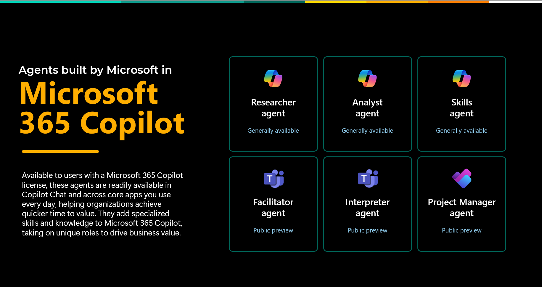 For many organizations, the fastest entry point to AI agents is through what you already own. Microsoft 365 Copilot now includes a set of built-in agents designed to extend everyday productivity tools like Outlook, Teams, and Excel. These agents are goal-driven and autonomous enough to handle multi-step reasoning, yet simple enough to deploy without custom development.